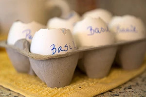 Carefully dry the shells and write the names of your new plants with a permanent marker right on the shell.