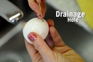 Rinse the shells and use a large needle or toothpick to poke a small drainage hole.