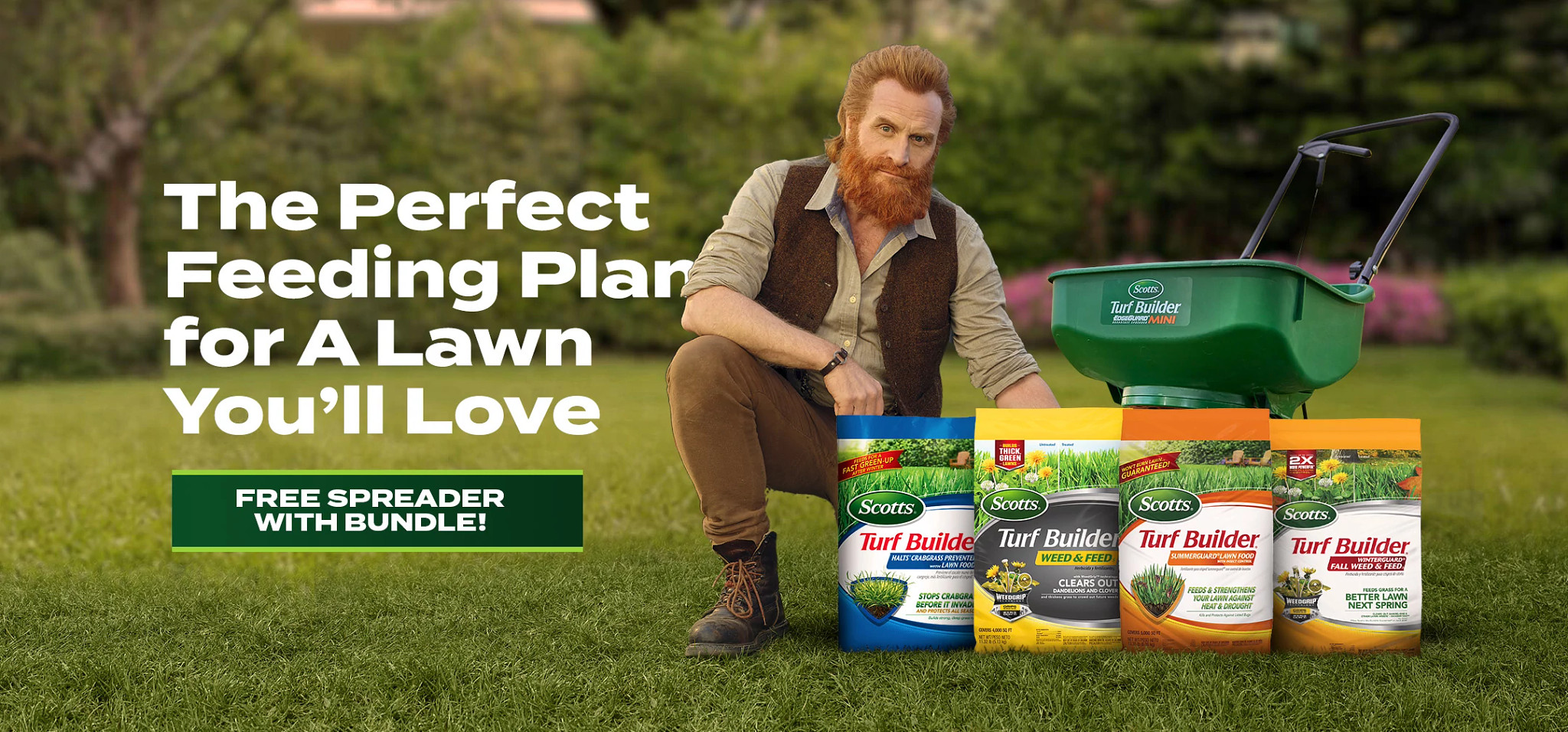 • Bundle includes 4 Scotts® Turf Builder® lawn foods, one product for each season + a free Scotts® Turf Builder® EdgeGuard® Mini Broadcast Spreader