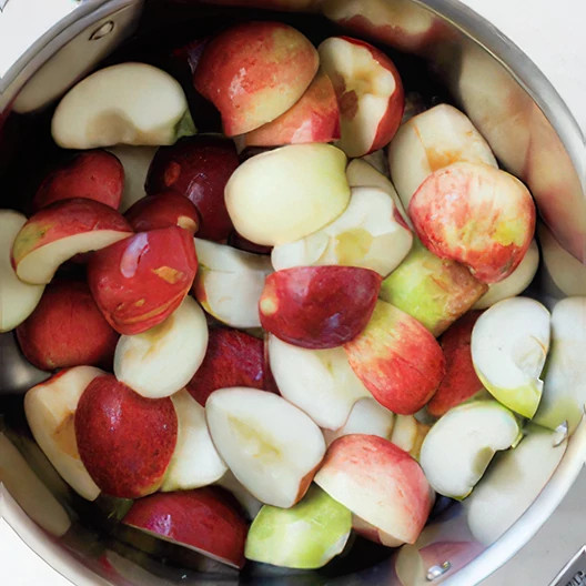 Quarter and core apples. (For white applesauce, peel the apples first.)