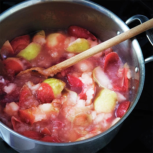 For applesauce, look for varieties that are juicy and break down well. McIntosh is a classic and produces that familiar applesauce flavor; Gala and Cortland are other good choices. When it comes right down to it, though, any apple can be used for sauce, and Martha always makes a mixed applesauce from the fruit on her farm. Experimenting and mixing a tart variety with a sweet one, or juicier apples with drier varieties, may produce excellent results, but take notes of the types you have used, so that you can replicate that exact flavor.