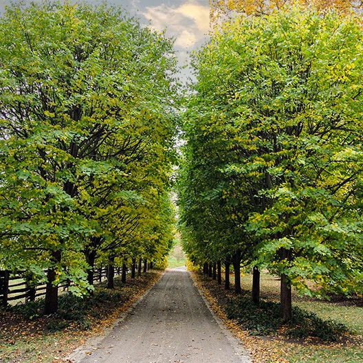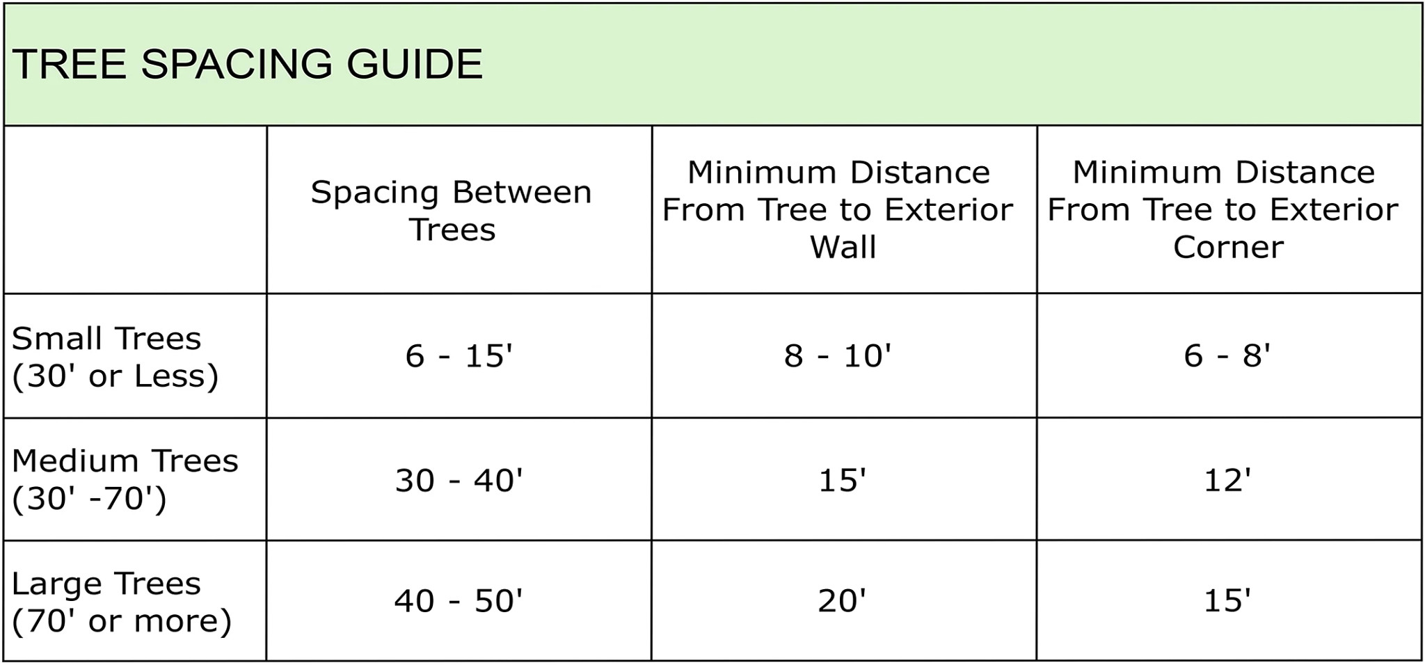 Plan for the largest potential size of the mature tree (height, width or crown spread, and root space, all stated on the tag) when plotting where it will go. You don’t want it growing too close to your house or other structures on your property. You'll want to make sure the trees will not extend into a neighbor's property and there may be ordinances prohibiting trees from extending over public streets. Think safety, too; you wouldn't want a large tree to end up hitting electrical wires when it is at its full height.