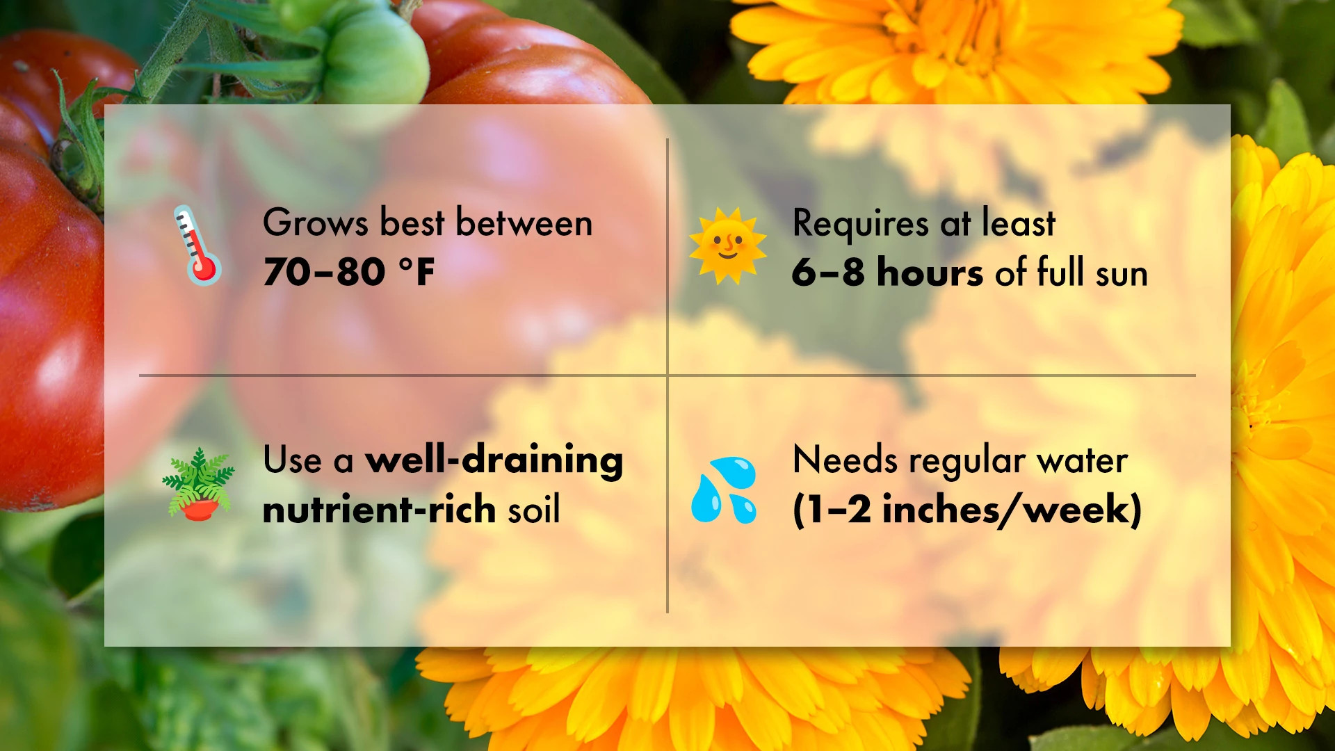 The tomato and marigold plants may seem very different, but their growing conditions are surprisingly similar.