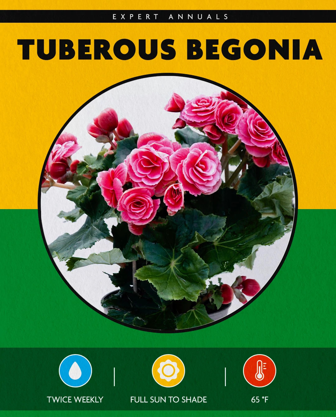 The Tuberous Begonia plant needs expert care due to its sensitivities to weather conditions — it can be damaged by too much sun and doesn't like hot, dry weather.