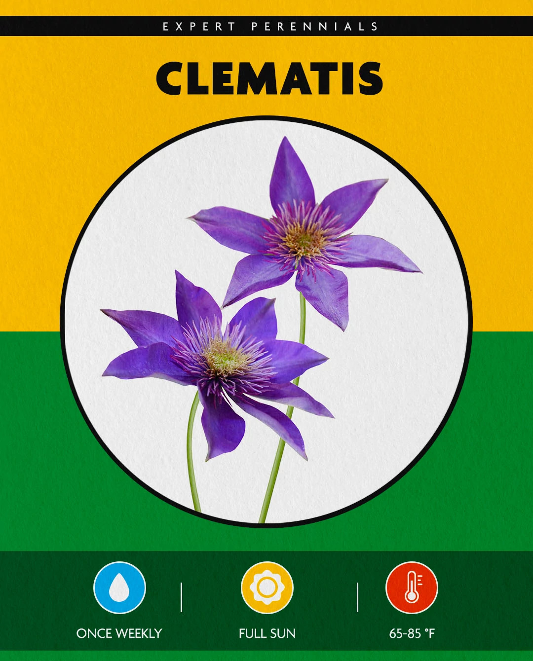 What’s to love: Celebrated for their elegance and versatility, the Clematis flower can be used as climbers, ground covers, or container plants.