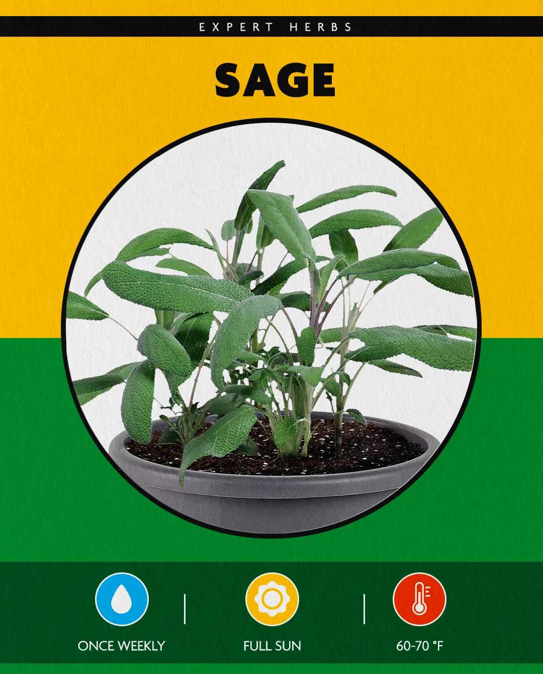 Pro tip: Sage thrives in full sun and heat but struggles in high humidity, so make sure your plant has plenty of good air circulation.