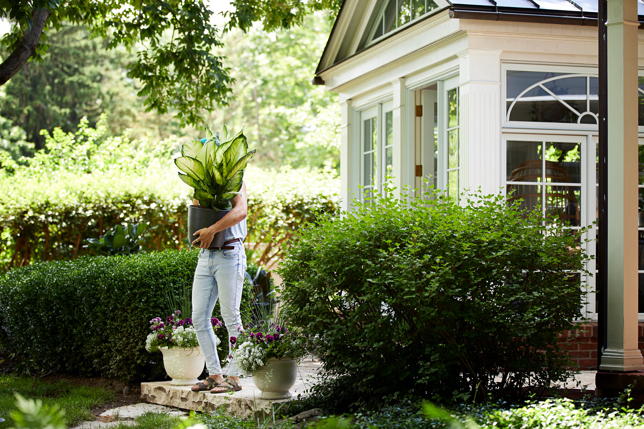 If you're wondering if some of these plants might want to become a permanent resident of the outdoors, slow down! While it might be time to transplant seedlings outdoors, many houseplants, including tropicals, citrus trees, and succulents, need specific conditions to thrive. Most regions simply get too cold in winter for these plants to survive. Keep in mind, too, that vine plants like pothos can become unruly in an in-ground garden. Let your houseplants enjoy the sunshine in warmer months—then bring them back in before the cold returns (more on that below).