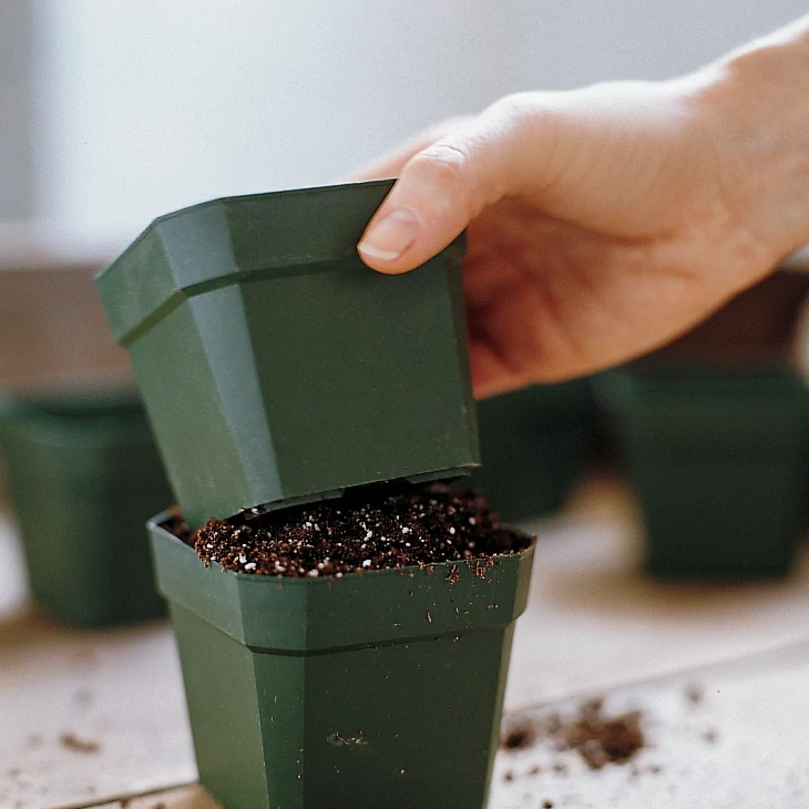 Fill pot with moistened seed starting soil.