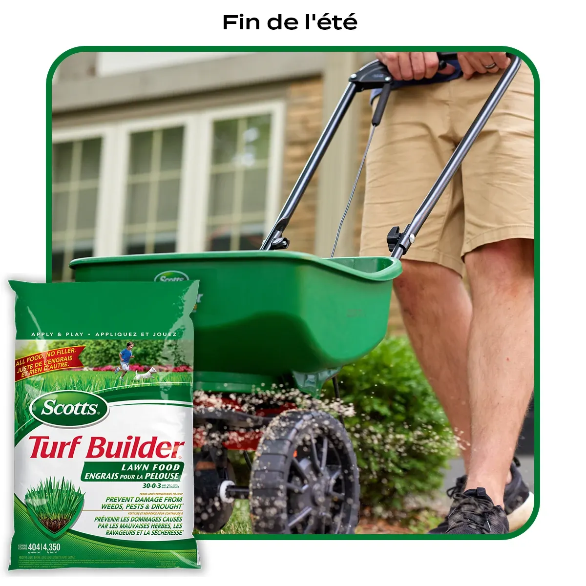 ✓ Épandez en toute saison de croissance, sur tout type de gazon, y compris les zones nouvellement ensemencées ou tourbées.